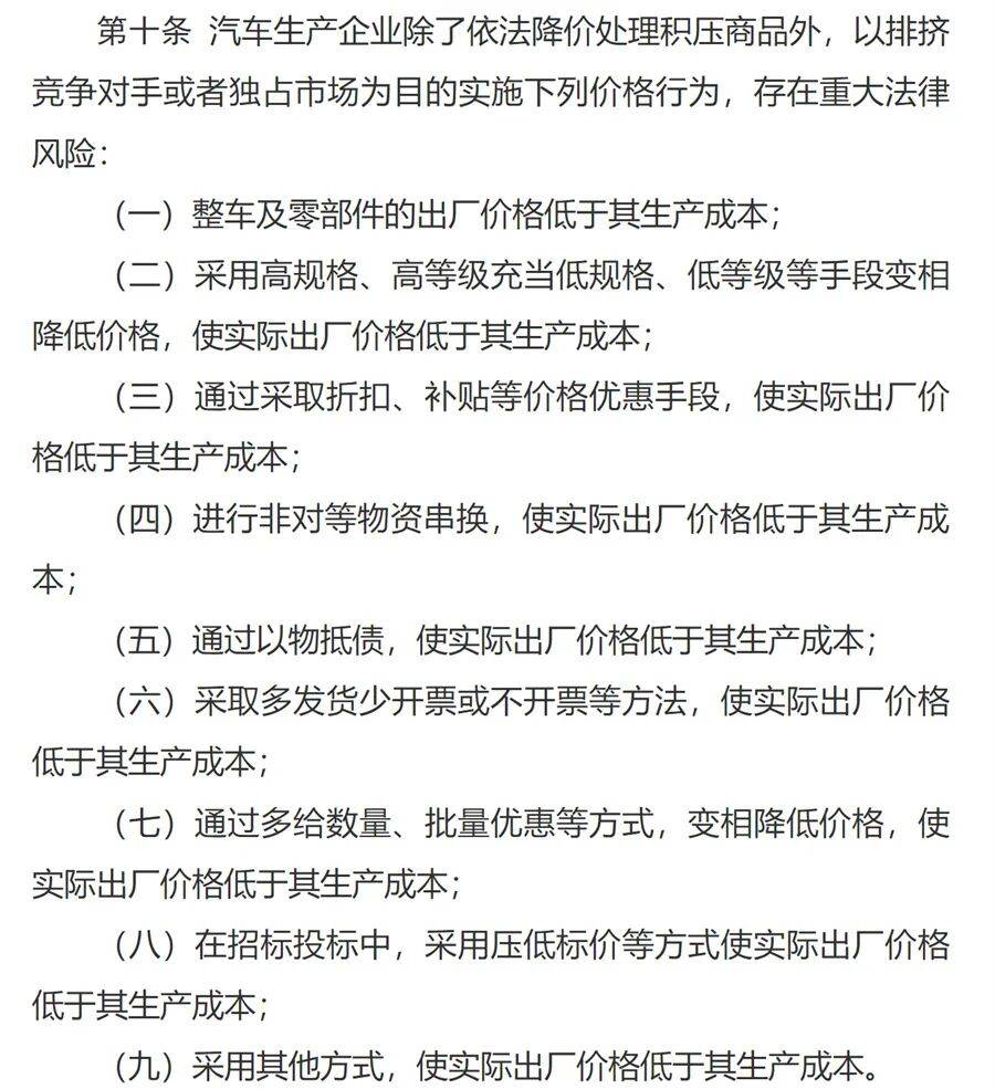 《汽車(chē)行業(yè)價(jià)格行為合規(guī)指南》車(chē)企的“虧本買(mǎi)賣(mài)”,這回真做到頭了