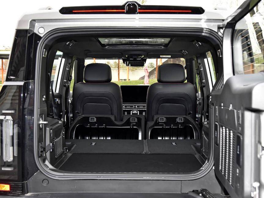 從日常使用來說,兩者都夠用,175cm的身高在坐后排翹個二郎腿也沒問題,中間的地臺也幾乎純平。但如果你是個露營愛好者,或者家里有娃經(jīng)常需要拉嬰兒車、帳篷,旅行者的后備箱會更從容,并且是側(cè)開門,更有硬派的感覺。