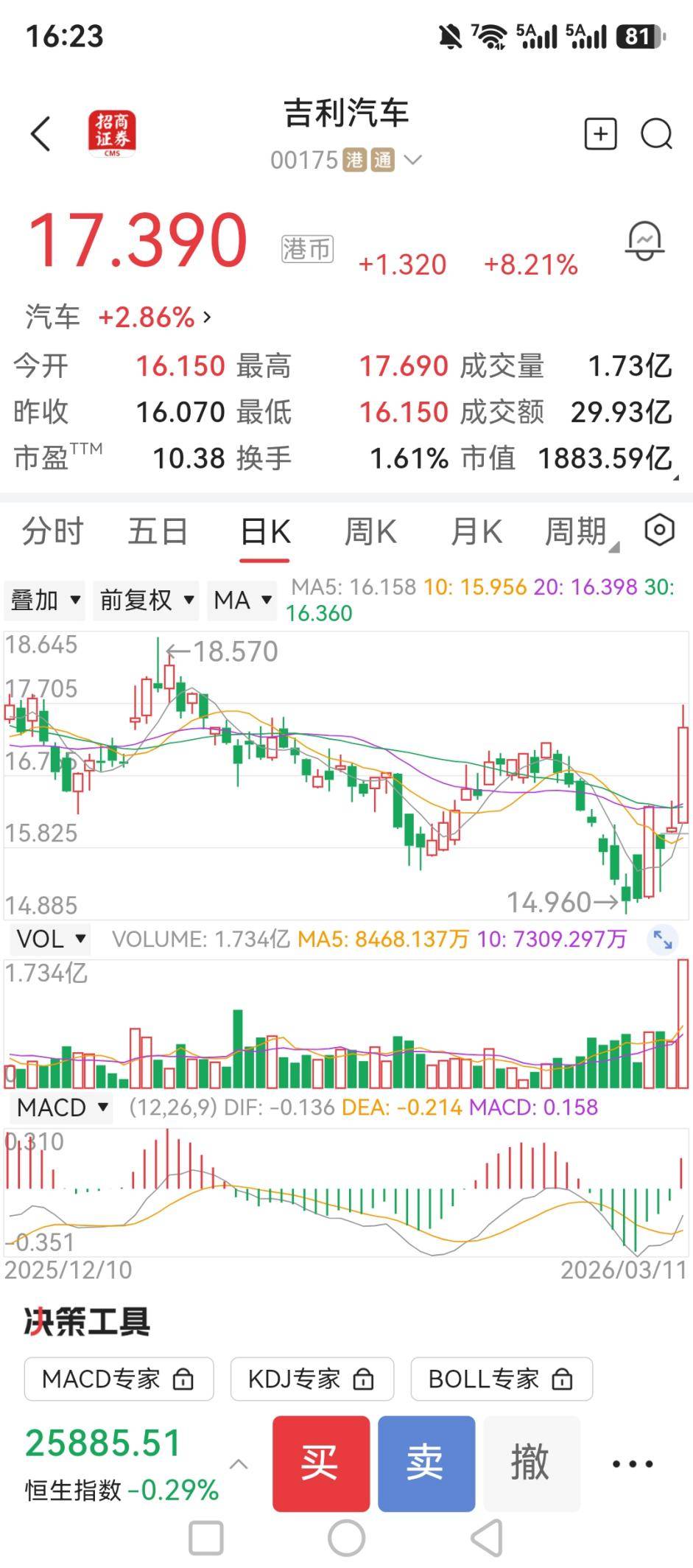 3月11日,吉利汽車的股民們大概率是笑著收盤的。這一天,吉利汽車盤中飆漲,最終收于17.39港元,漲幅定格在8.21%。在波瀾不驚的港股大市中,這一抹紅格外扎眼,甚至創下近五年來的單日最大漲幅。