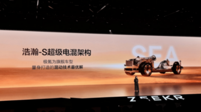 首先,新車基于浩瀚-S架構打造,采用2.0T發動機+雙電機/三電機的動力組合,匹配70度的電池組,CLTC純電續航里程最高可達410km,綜合續航里程1416km。