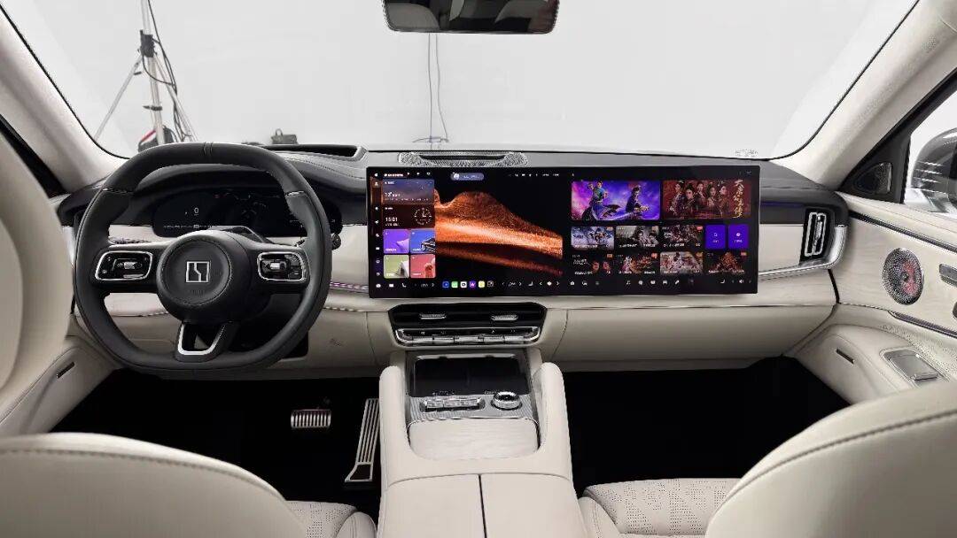 它的內飾更接近極氪001那種調性—科技感為主,運動感為輔,雙16寸聯屏、大量的實體按鍵配合上簡潔的線條、用料扎實但不油膩。