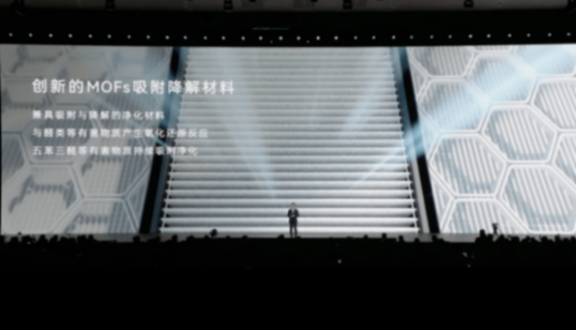 在健康座艙方面,智界雙7同樣樹立新標桿。新車率先搭載鴻蒙ALPS健康座艙,核心材料采用了2025年諾貝爾化學獎所表彰的MOFs(金屬有機框架)。這種擁有精準調控納米級孔道結構的材料,能夠高效吸附PM2.5、五苯三醛等有害物質,同時可將醛類等有害物分解為無害的水和二氧化碳,實現“吸附+降解”的凈化閉環。配合MOFs抗菌濾芯與內飾材料,智界雙7為用戶打造出一個“會呼吸”的出行空間。
