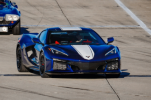 這款新車與歷代科爾維特Grand Sport一同登場,參與了一場特別的巡游圈速展示。它采用一套極具辨識度的經典涂裝:主體為海軍上將藍,搭配醒目的黑色賽車條紋,后輪拱處輔以紅色裝飾點綴。