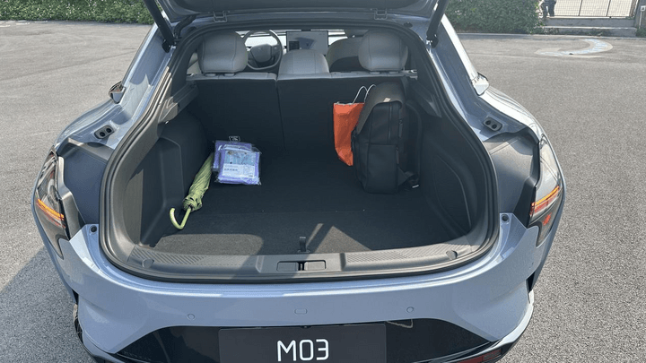 雖然定位是緊湊型轎跑,但MONA M03的空間表現遠超預期。2815mm的軸距保證了后排腿部空間足夠寬裕,地臺純平,坐三個成年人也不覺得擁擠。