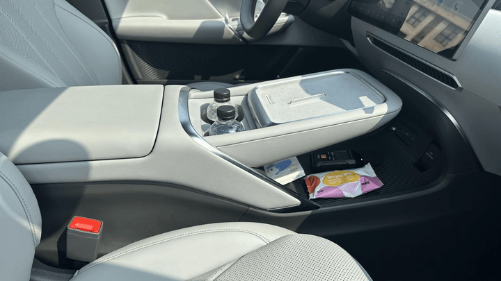 懸浮式扶手臺下方是巨大的開放式儲物空間,實測放下女生的高跟鞋或手提包綽綽有余。門板儲物也經過重新設計,前門能放下2把雨傘和2瓶水,之前被吐槽的扶手槽底部是空的不能放手機,這次也給大家封上了,真是細節滿分。
