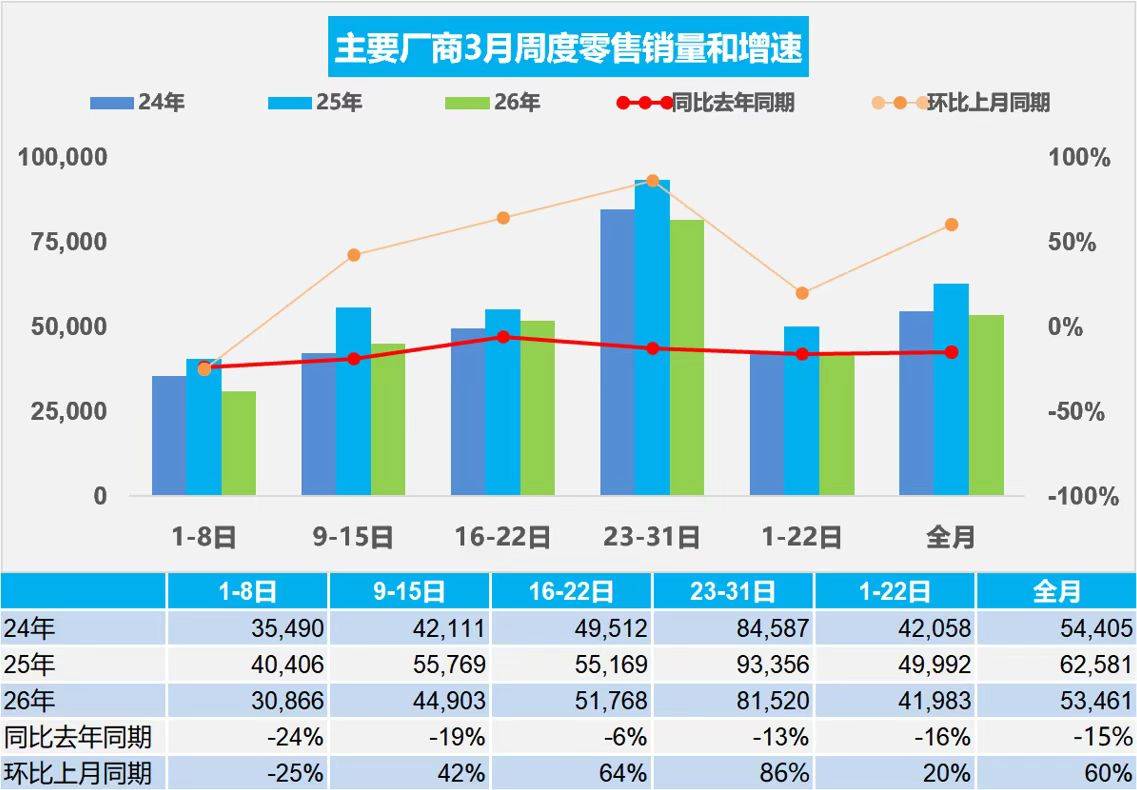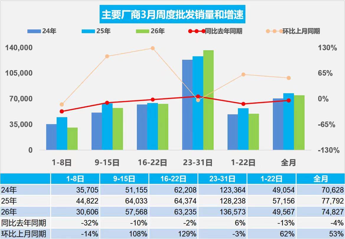 逐周增長但整體偏弱,對此,乘聯分會分析,這主要與春節后市場恢復緩慢,燃油車銷售旺季結束、油價上漲對燃油車形成負面影響,以及消費者等待新能源新品落地等多重因素有關。
