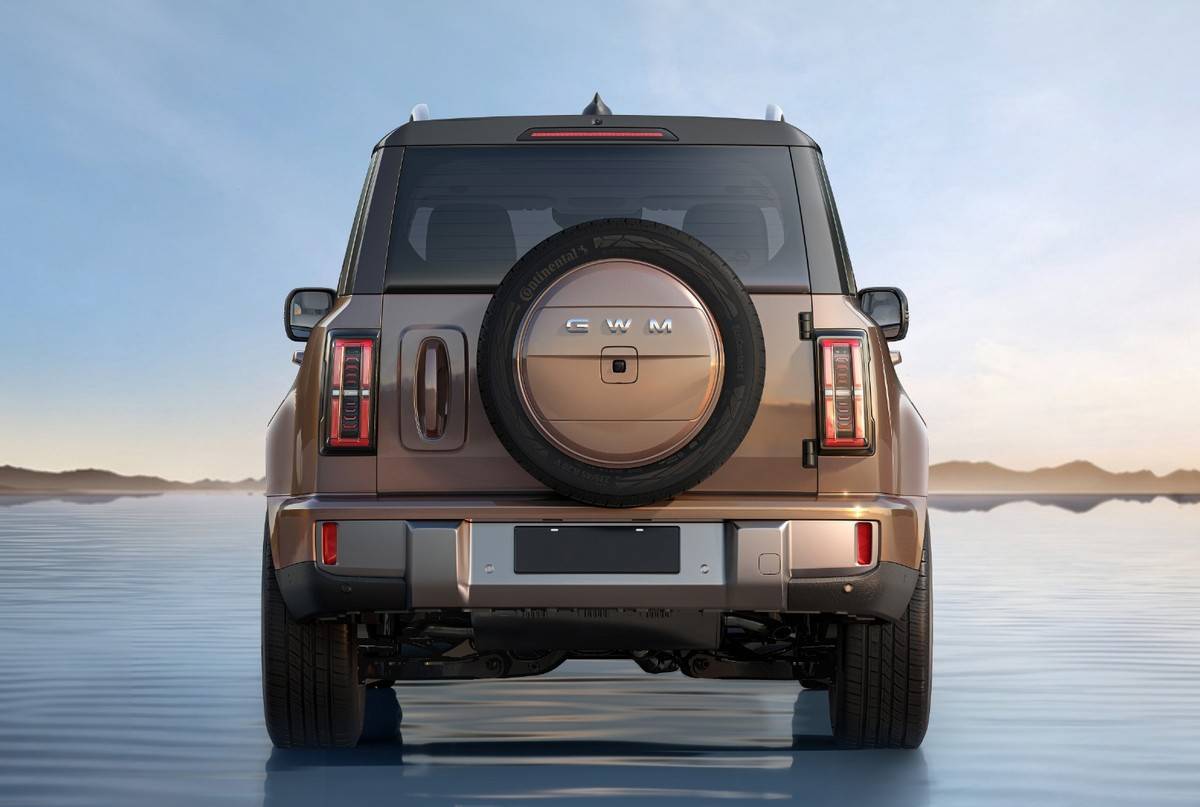 車身側面延續了“方盒子”的經典輪廓,平直的車頂、硬朗的腰線以及外擴的輪眉,都彰顯著其硬派身份。車頂行李架的加入,兼顧了戶外出行的實用需求。車尾設計同樣充滿越野氣息,采用了側開式尾門和標志性的外掛備胎,縱置的尾燈組內部結構也頗具看點。