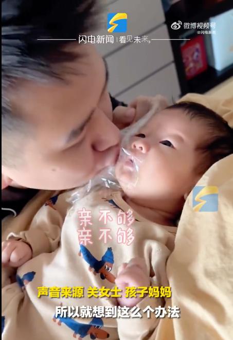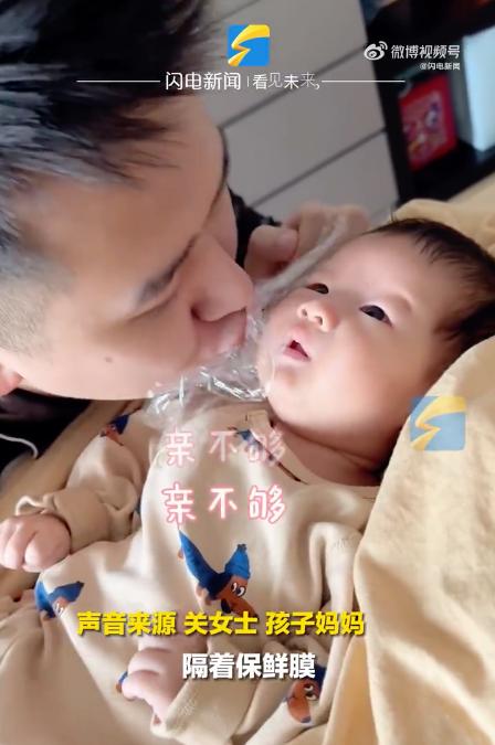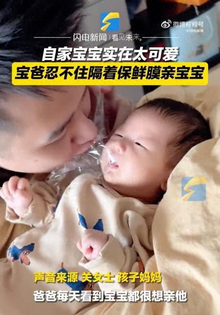 3月18日,陜西西安。爸爸每天看到自家的可愛小寶寶都想親,但也知道不可以,就想了個辦法,隔著保鮮膜跟寶寶膩歪。哪有爸爸媽媽忍得住不稀罕自家寶寶的~