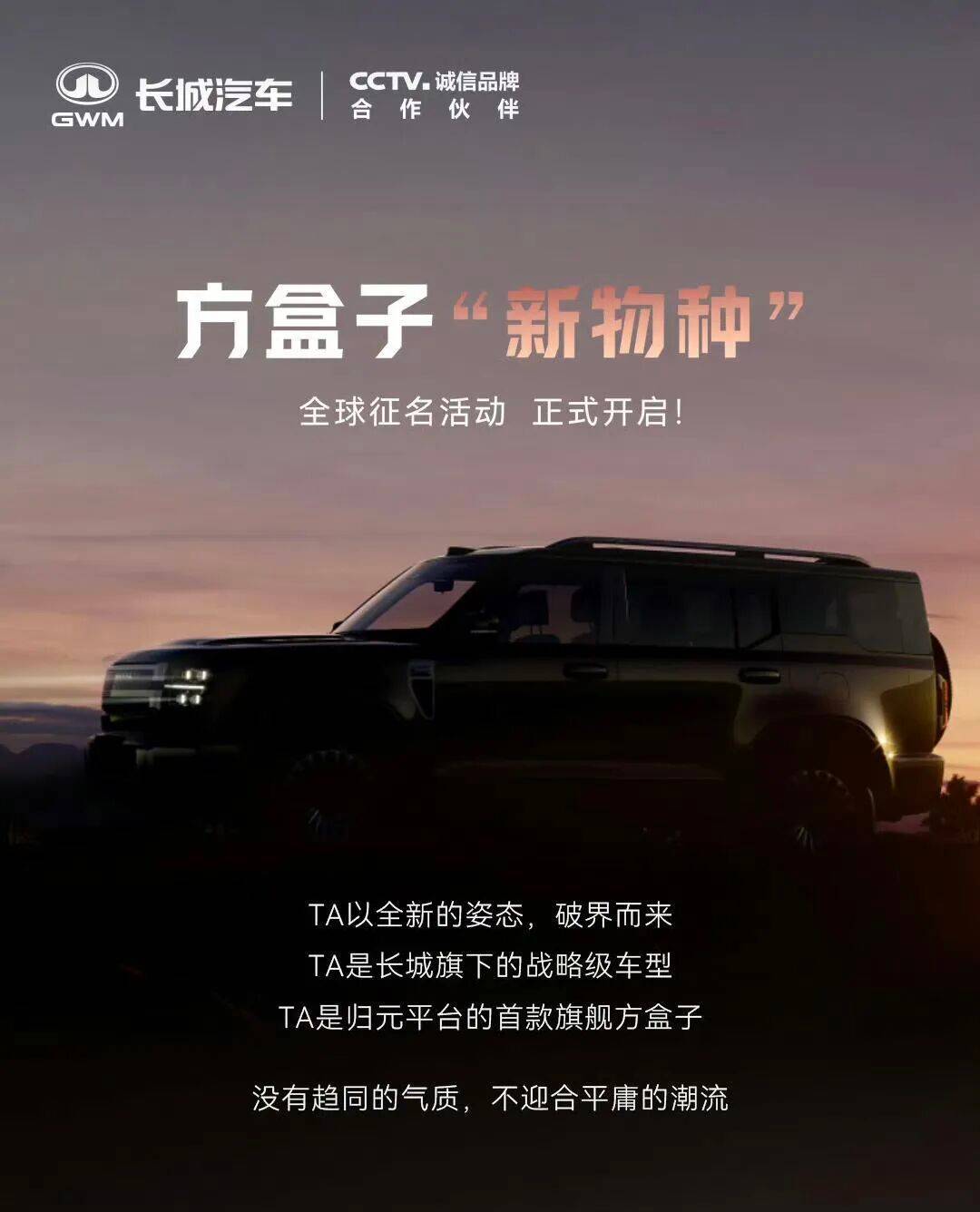 長城哈弗今天發(fā)了臺新車官圖,代號HX,歸元平臺的第一款方盒子旗艦。名字還沒定,但搞了個(gè)全球征名。大概率想復(fù)制當(dāng)年坦克300、哈弗大狗那波熱度。
