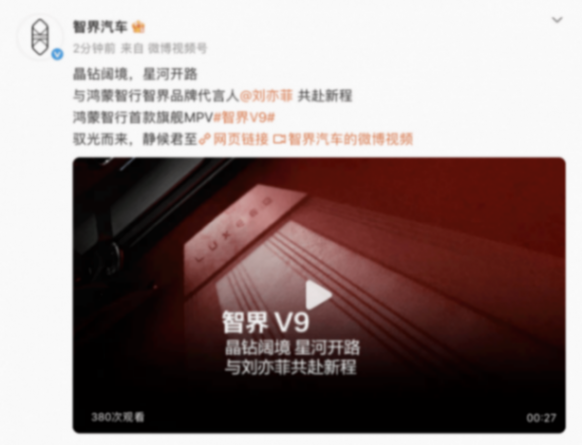 4月13日,智界汽車正式發(fā)布鴻蒙智行首款旗艦MPV智界V9的智能交互式側門光毯視頻,并同步官宣劉亦菲成為品牌代言人,瞬間引爆全網關注。智界V9以光為媒介,首創(chuàng)智能交互式側門光毯,并搭載全新一代DLP智慧投影大燈,將實現(xiàn)尊崇儀式感、行車安全與技術革新三大維度的全面突破,以可視、可觸、可感的尊崇體驗,夯實“MPV科技車皇”的產品認知。
