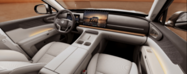 設計層面,D19延續(xù)并進化了零跑提出的“科技自然美學”理念。整車在視覺表達上強調橫向延展與整體統(tǒng)一感,貫穿式燈組與大尺寸格柵形成鮮明識別度,同時通過像素級燈光系統(tǒng)強化科技屬性。車側以平直線條為主,配合大尺寸輪轂與低風阻細節(jié),呈現出偏穩(wěn)重的旗艦氣質。相比以往偏理性的設計表達,D19在質感與情緒表達上明顯更加成熟。