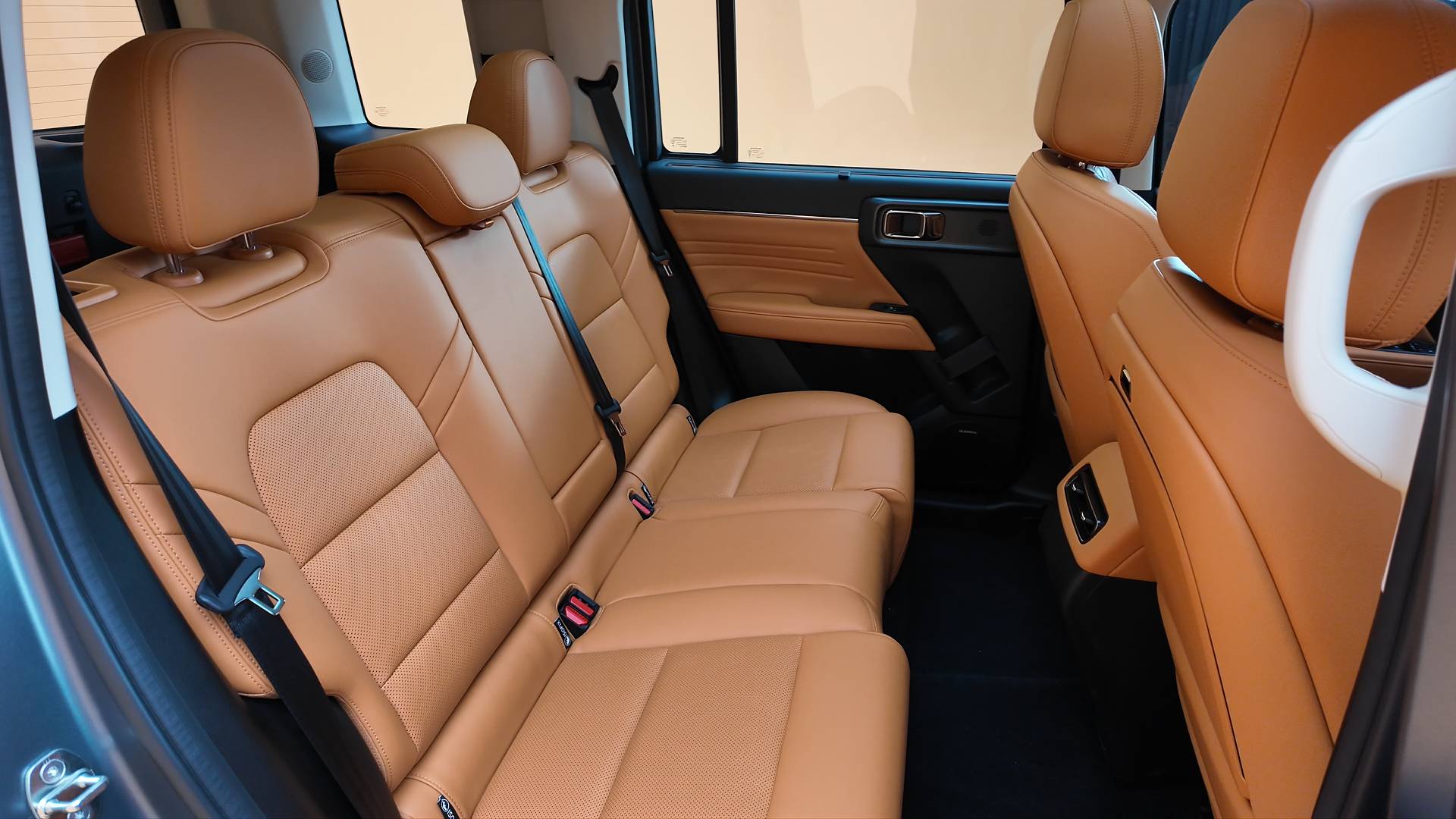 作為猛龍的升級車型,新車變化之一“如其名”--尺寸PLUS了,長寬高加長至4912mm/1950mm/1905mm,包括軸距也提升了112mm,來到2850mm。它繼續提供5座與7座布局,我們已經測評過了5座版本,頭部與腿部空間都非常寬裕。哪怕坐滿5人出行,二排地臺接近全憑,也不用糾結誰坐中間不舒適的問題,甚至后排還提供了小桌板,也冷暖冰箱。