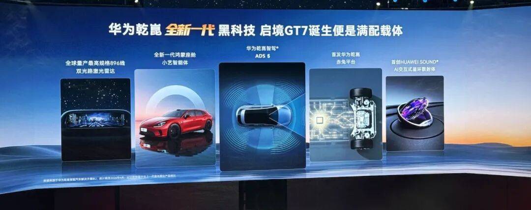啟境GT7將搭載華為乾崑全新一代黑科技,包括896線雙光路激光雷達(dá)、全新鴻蒙座艙小藝智能體、華為乾崑ADS5等等全新功能都將上線這款新車。