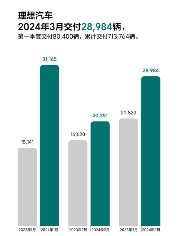 3月銷量/交付量:理想汽車交付新車28984輛