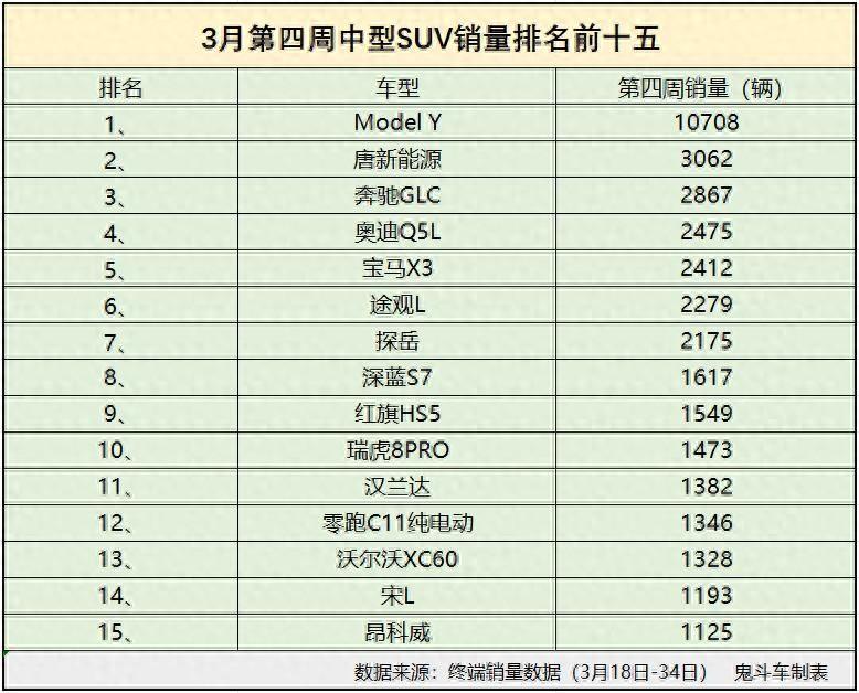 全面反攻的中國品牌逐漸走進中型SUV市場的主流陣營,這一點,在銷量上體現得更為明顯。日前,3月第四周(3月18日-24日)終端銷量榜單出爐,看看這一細分市場,誰持續領跑?誰開始走下“神壇”?