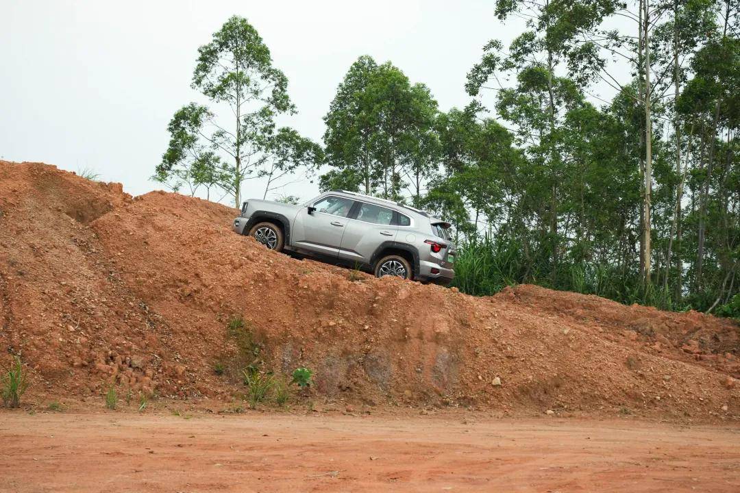 而在實際體驗下,當車輛SOC電量只有25%左右時,二代大狗Hi4可以以10km/h的速度勻速爬上斜度為25°左右,垂直高度為10米左右的土坡,充分發(fā)揮出了電機扭矩更強的優(yōu)勢。