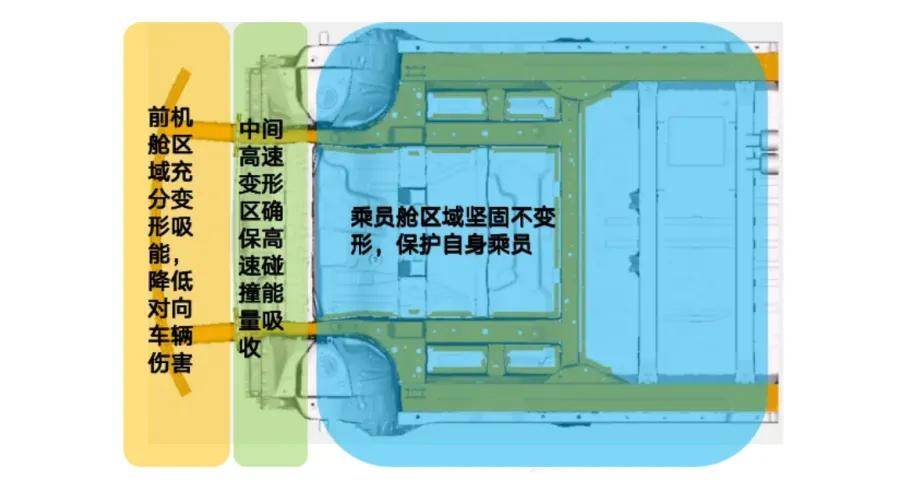 對于L380這類純電車型來說,不僅要在碰撞中保護乘員,更需要保護電池,防止發生起火/觸電等二次傷害。L380巧妙的把小電池、保險絲、域控制器轉移到更加保險的座椅下方,從而確保即便發生碰撞也能安全用電,門鎖、車機、高壓電動水泵都能正常工作;而對碰撞中風險較大的大電池,則在碰撞的瞬間,通過物理推動的方式與高壓系統斷開連接,從而避免二次事故發生。