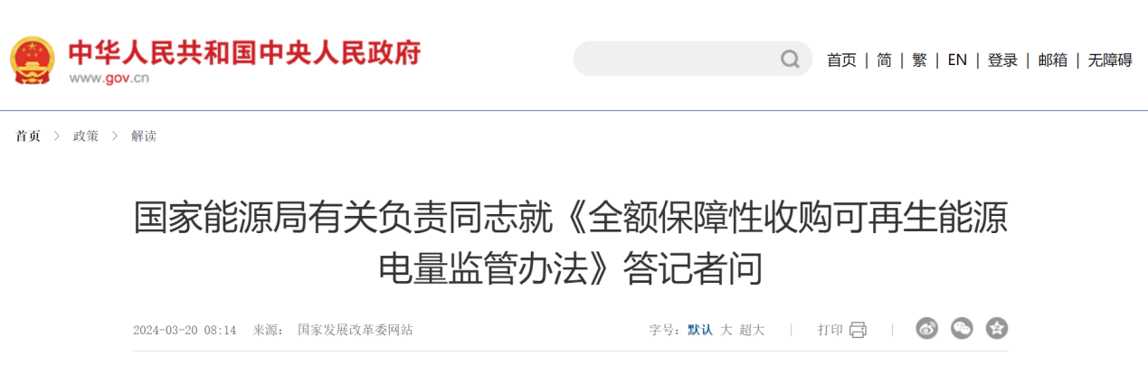 隨著電量收購政策調整,我國可再生能源發電(風電、水電、光伏電等)將被劃分成保障性收購電量和市場交易電量,原本全額收購變成了只收購保障性電量。即,社會用電需求有多少,電網就收多少,剩下部分只能由電的生產企業自行銷售。