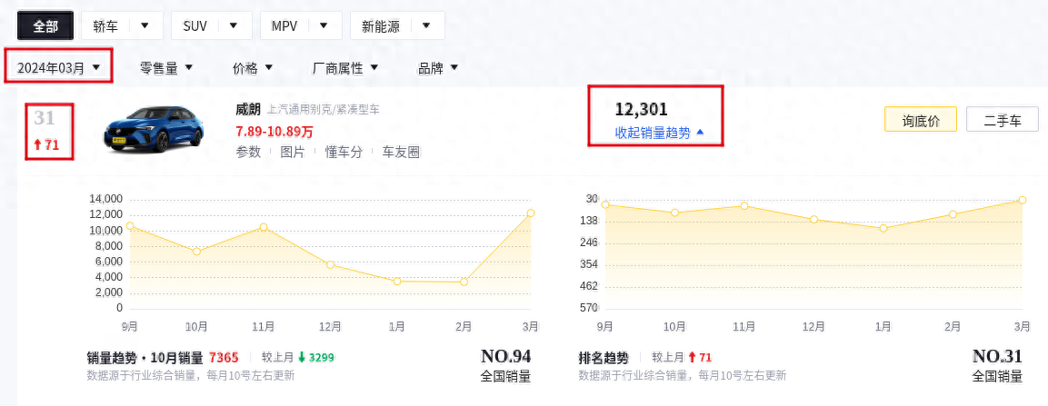 隨著當下新能源汽車的快速發展崛起,對于傳統燃油車的沖擊也在不斷擴大。畢竟作為新能源汽車,其較低的用車成本吸引了非常多的消費者。雖然對于統燃油車而言,整體的銷量遭受了很大的沖擊,但是有一些車型的關注度依舊表現不錯,今天我們要說的這款車則是別克汽車旗下的威朗了,在懂車帝發布的2024年3月份汽車銷量排行榜中,別克威朗銷量12301輛,名列3月份汽車銷量排行榜的第三十一名。值得一提的是,此次的別克威朗在銷量排名上,相比2月份而言,其排名上漲了71個名次。那么對于別克威朗這款車而言,其首年的用車成本如何呢?