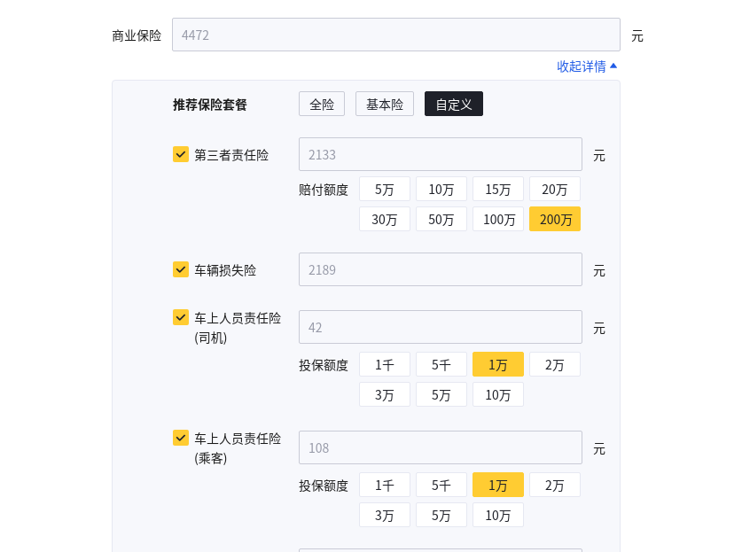 具體來看,我們為了統一標準,按照目前這款車指導價格進行計算保險費用,我們按照第三方責任險為200萬賠付額來計算,價格為2133元,車輛損失險為2189元,車上人員責任險(司機+乘客)賠付額為1萬來計算共150元, 商業險共計4472元,再加上交強險950元,車船稅350元。一共為5772元。(每個車主的購買需求和保險公司的銷售政策以及車輛年限,保險價格會有變動,最終以實際為準。)