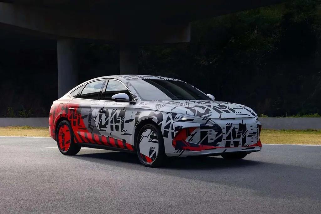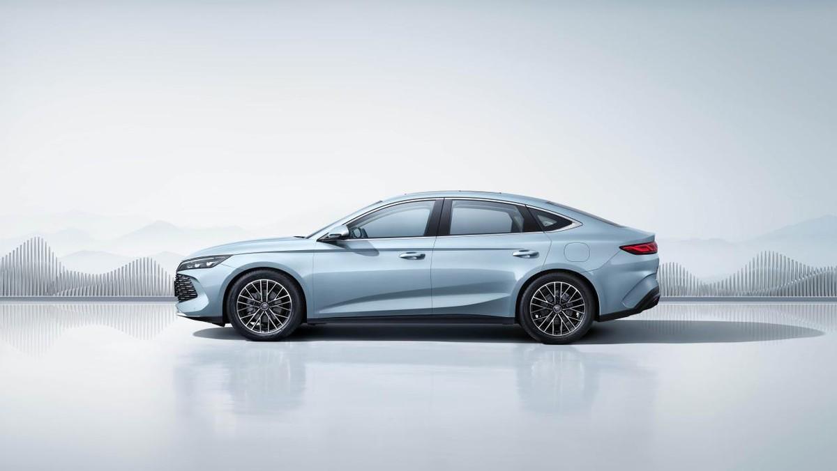 車身姿態與比亞迪漢接近,新車長寬高分別為4830mm/1900mm/1495mm,大溜背營造出運動屬性,車窗還裝飾了銀色飾條,更顯精致,突出的腰線保持著一定角度的傾斜,和下裙位置夸張筋線處理豐富了車身的層次感。