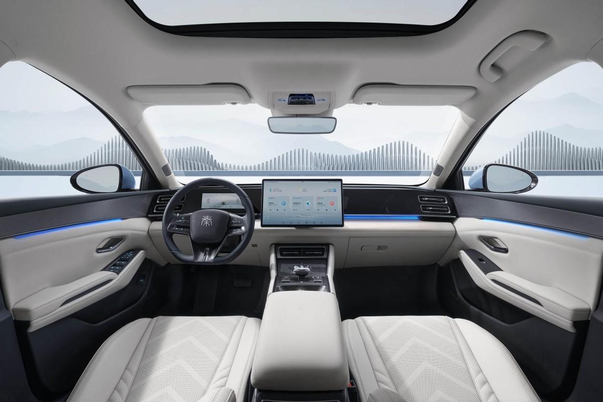 配置方面,秦L DM-i將提供31色華彩氛圍燈、23處儲物空間、大尺寸全景天窗、深淺模式、智能云服務、NFC數字鑰匙、3D全景透明影像系統、全場景智能語音、車載ETC、智能上下電、6kW移動電站、手機無線充電、主/副駕座椅通風&加熱以及DiPilot智能駕駛輔助系統。